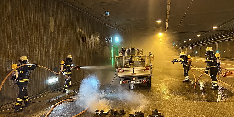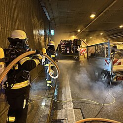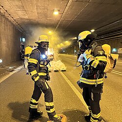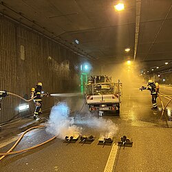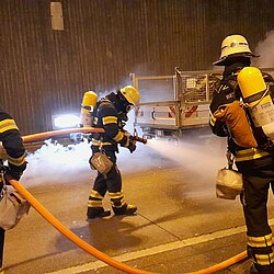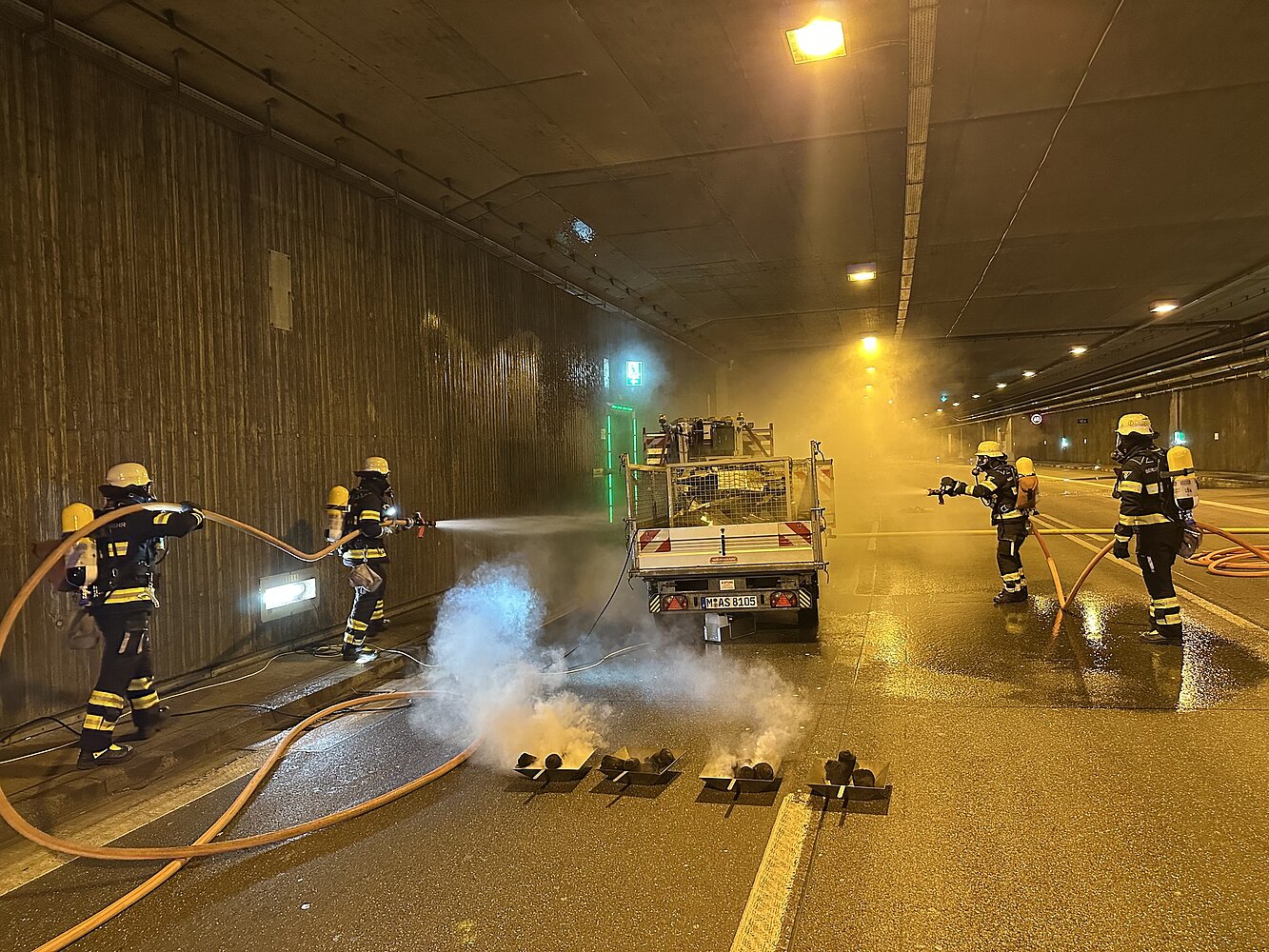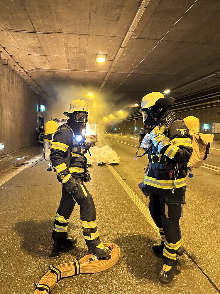 Es konnten vor allem Zeitabläufe bei der Alarmierung, der Anfahrt und den Erstmaßnahmen zur schnellen Brandbekämpfung praxisnah überprüft werden. Alles lief reibungslos und routiniert ab. Die Zusammenarbeit zwischen den Löschzügen und der Tunnelbetriebszentrale funktionierte vorbildlich.